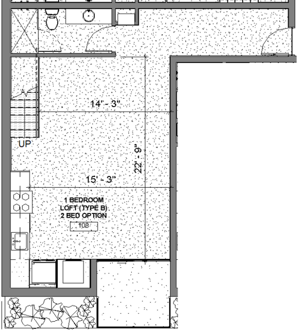 This apartment is a two story unit on the SE corner of the property with a lofted bedroom above the living area. High ceilings and lots of natural light make this apartment a must see!
